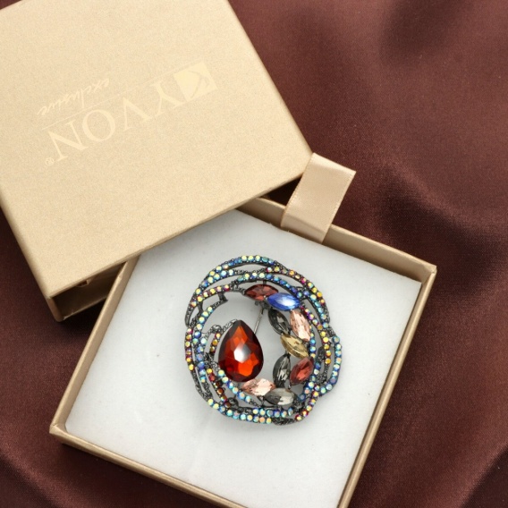 Elegancka broszka wykonana z wysokiej jakości szkła fasetowanego oraz metalu hypoalergicznego. Subtelny dodatek, który idealnie wpisuje się w jesienne stylizacje. Każda broszka pakowana jest w prześliczne pudełeczko z wysuwaną szufladką, dzięki czemu świetnie sprawdzi się również jako gotowy prezent – bez potrzeby dodatkowego opakowywania.