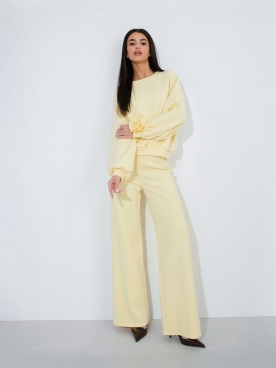 Komplet w kolorze pastelowej żółci z ozdobną różą