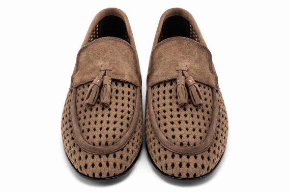 Eleganckie mokasyny męskie marki John Doubare, wykonane z wysokiej jakości naturalnej skóry zamszowej. Model wyróżnia się efektowną, plecioną strukturą cholewki, która zapewnia doskonałą przewiewność i komfort noszenia, szczególnie w cieplejsze dni.