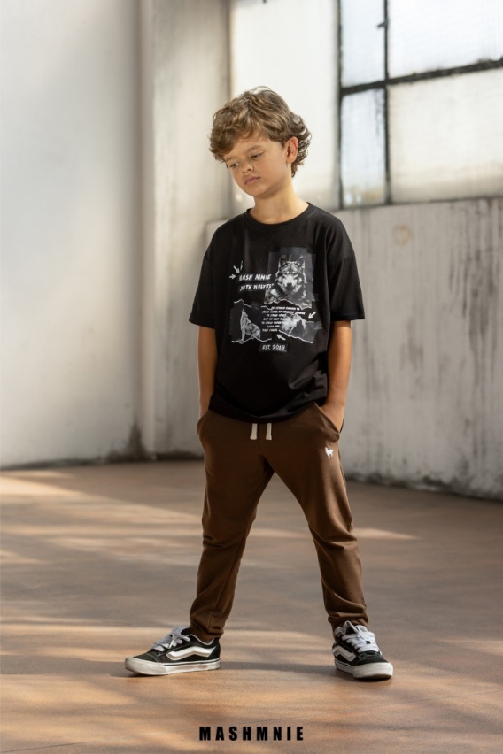 Spodnie dresowe dla chłopca brązowe AW25 Mash Mnie